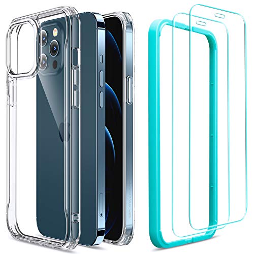 Slim & clear – The crystal-clear yellowing-resistant back of this iPhone 12/12 pro slim case shows off your iPhone's original look., Shock-absorbing – A hard back, flexible bumper, and shock-absorbing corners protect your iPhone 12/12 pro from short drops & bumps., Includes 2 screen protectors – Tempered-glass screen protectors with a blue-green installation frame make comprehensive protection a breeze. Note: The blue-green installation frame is not part of the case., Screen & camera protection – The screen protectors and raised bezels protect your iPhone 12/12 pro's screen and camera from scratches., Looks & feels great – The finger-friendly backplate provides a comfortable grip and adds a unique twist to your iPhone.