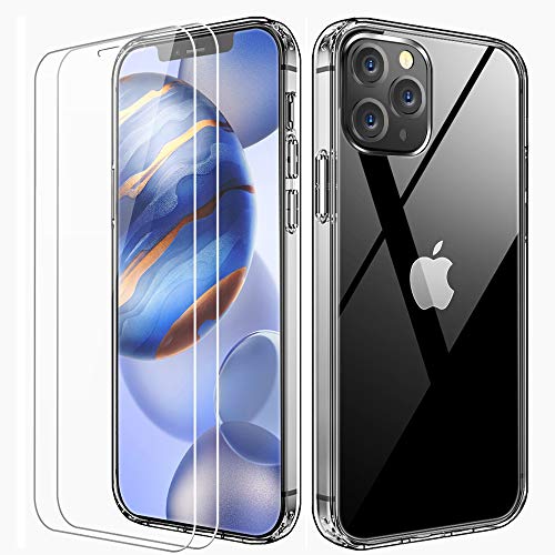 【COMPATIBLE WITH iPhone 12 6.1 INCHES】 Compatible with iPhone 12 2020 or iPhone 12 Pro 2020 [6.1"] not for other iPhone model. Please confirm before purchasing. This Case is also compatible with Magsafe., 【WITH SCREEN PROTECTOR 】iPhone 12 pro clear case built in 2 Pcs tempered glass screen protector, full coverage to protect your iPhone.The included locator allows you to easily install screen protector., 【ULTRA CLEAR HYBRID CASE】Shockproof Hard PC back cover provides safer protection, soft TPU bumper provides more comfortable grip.Ultra slim HD clear and anti-yellow reserves the original look of your i Phone., 【SCREEN & CAMERA PROTECTION】Raised lips and edges around the display screen and the camera to avoid screen and lens from scratches when placed face down., 【PRECISE CUTOUTS】Precise cutouts of iPhone 12 provide you with easy access to all ports, speakers, camera, buttons and other features.
