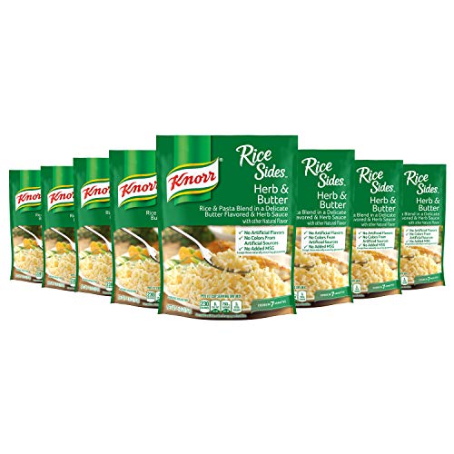 Knorr Rice Sides Herb & Butter Rice (5.4oz) is a rice & pasta blend side dish that enhances meals with amazing flavor, Herb & Butter Rice Sides expertly combines oregano, rosemary, basil and thyme with a delicate butter sauce, No artificial flavors, Quick and easy to prepare - Cooks in 7 minutes, Stovetop or microwave cooking