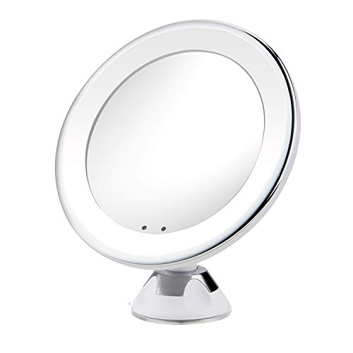 Compact Design: 8-inch diameter (including LED loop and shell); 5.1-inch diameter (inner mirror only)., 10X Magnification: 10X magnification with LED light for a clearer and more detailed look., Multi-Angle Setup: The easy to use suction cup with multiple angle support allows you or your customer to find the perfect angle., Smart Motion Sensors: LED Sensor: Motion sensors will light the mirror when a subject is near enough to closely view the mirror., Batteries Included: 3 AAA (included), power/USB cable (included), also includes a cleaning cloth.