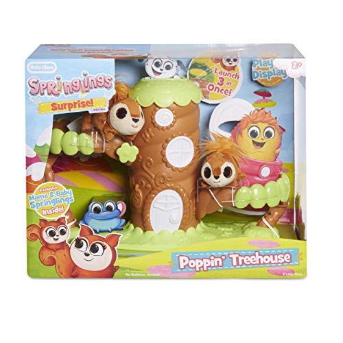 Put your favorite springlings characters inside the springlings surprise Poppin' Tree house, then watch them pop out, Includes exclusive mama & baby Squirrel springlings characters, Holds up to four springlings at a time -- the more springlings that kids put inside the tree house, The higher they fly When they pop out, Playset doubles as a cute way to store and display your springlings, Put your springlings characters' Homes in the trees branches to add even more springy fun!, No batteries required, Ages 2+