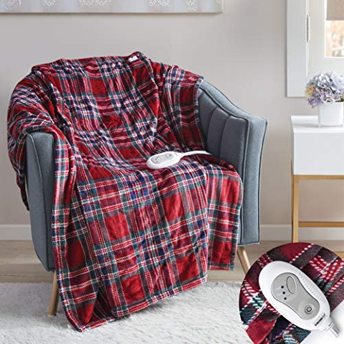 PROTECT SKIN FROM BURNS & RADIATION: MOST COMPETITORS DON’T MENTION how harmful amounts of electromagnetic radiation can be transmitted through the heating process in most electric blankets. NOT IN OURS, we’ve engineered our heating blankets to heat up with barely any EMF radiation being dispensed. Also, our blankets are 100% UL CERTIFIED., LOWER YOUR ELECTRIC BILL – WHILE STAYING WARM ALL NIGHT: YOU GET TO CHOOSE how toasty warm you prefer to be when you sleep. Enjoy 3 different heating levels with our custom LED controller with also built in auto shut off. We know some of you LIKE IT HOT and you like to SAVE MONEY. Imagine this… turn off your homes heat at night and cuddle into our heated throw blanket. Then wake up to a reduced electric bill., PERFECTLY POSITIONED CORD WON’T POKE YOU AT NIGHT: 6FT LONG POWER CORD gives you plenty of reach to any nearby outlet whether you’re in the bedroom, camping, RV, air mattress or carpet AND YOU WON’T EVEN FEEL IT’S THERE. The conveniently placed 3ft controller cord can easily be reached and tucked away as well., SUPER SIMPLE TO WASH: Just disconnect the controller and power cables and simply throw the entire electric throw blanket into the wash. Use cold or lukewarm water and put it on a slow agitation cycle. Then toss it in the dryer on low heat or let it air dry. STAYS SILKY SOFT after many washes., BUILT TO LAST: 5 YEAR WARRANTY – WE KNOW YOU’RE TIRED OF buying inferior heated throws that stop working in only the first few uses. That’s why we engineered our heated throw blanket to last in comfortable cozy conditions or even the most rugged adventurous settings.