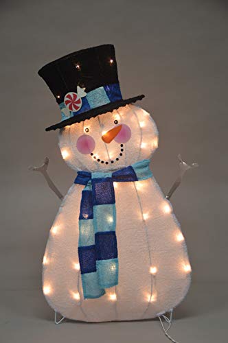 Officially licensed Candy Cane Lane Snowman Christmas Yard Decoration, Festive statue features the classic Candy Cane Lane Snowman, Constructed of a durable metal frame covered in a soft and colorful fabric for a festive look and feel, Statue is pre-lit from inside by 35 clear lights and is perfect to use during the day or night for a great display, Measures 32" x 20" x 6", material type: Fabric Metal