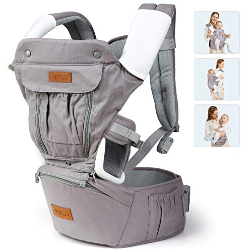 💕【9 Ways to Carry】: Amzdeal baby carrier has 9 ways to carry, including Hip Seat, Independent Baby Carrier and Baby Carrier with Hip Seat. Perfect for children aged 0-36months and weighing 8lb-33lb. According to the different ages of children, there are also suitable methods for reference to carry your babies. Also, you can also discover more carry ways., 💕【100% Breathable Cotton Material】: Amzdeal Baby Carrier uses 100% high quality cotton, soft and close to the skin, protecting both the baby's and parents’ skin from harm and bringing the baby the gentlest care. Adjustable mesh panel provides extra ventilation for optimal breathability for the baby in your hug. Windproof and warm in winter, breathable in summer. Suitable for all seasons., 💕【Ergonomic Hip Seat Design】: Amzdeal baby carrier with hip seat supports baby in an ergonomic natural 'M' position in all carry positions and provide good support for the baby’s hip development, so that the baby does not get O-shaped legs. EPP seat core, no deformation, baby sitting more convenient. Provide good support to the baby's legs and ensure normal blood circulation in the baby's legs., 💕【Reasonable Distribution of Load-bearing】:The wide waist belt and thick shoulder straps scientifically reduce the burden, and evenly distribute the force points on the abdomen, waist and shoulders of adults, so as to ensure the maximum comfort of your back, and prevent long-term unreasonable weight-bearing from causing spinal injuries ., 💕【Easy to Use】: No need to worry about the size! Adjustable waist belt and shoulder straps to offer even a wider range of fit for people of all sizes. Not only design for mum, but also for dad. The waist belt velcro attachment takes seconds to put on. Also, pockets are designed for parents to store Phone or Baby bottle. Perfect for travelling, shopping and hiking.