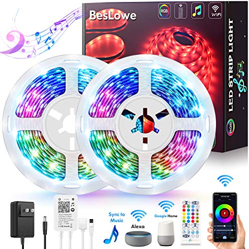 👉【Control Lights at Ease in Four Ways】Beslowe LED strip lights are compatible with Alexa and Google Assistant, allowing you to voice control the lights without moving an inch. Connect these strip lights with cellphone via Wi-Fi and you can remotely control the lights with a simple tap on matched APP. Meanwhile, the 40-key IR remoter and controller box that comes with the package are excellent backup plans for turning on/off lights or changing light colors if your cellphone runs out of battery., 👉【Extremely Versatile】Featuring high-brightness SMD 5050 LED chips, these LED strip lights with fully dimmable capability offer over 16 million colors to decorate your space. They can be natural white lights for daily illumination or gorgeous colorful lights for special occasions. With high flexibility and a thickness of 1/16’’ (2mm), these LED strip lights can be installed in many tight spaces and easily hidden from view. Perfect decorative lighting for bedroom, living room, cabinet and etc., 👉【Sync to Music Beats】With built-in MEMS microphone, these smart LED strip lights can acquire ambient sound in real time and change light colors along with rhythms when set in music mode. Super cool feature to warm up the atmosphere and spice up your party. Create amazing lighting effect for commercial places like restaurant, bar, coffee house, stores and etc., 👉【Easy Peel & Stick】The back of the strips are fitted with strong 3M tape so you can easily have them setup in few minutes with simple peeling and sticking. Four fixing clips and one piece of extra tape are included in the package to stick the controller box and wire onto wall and keep your space tidy., 👉【Worry-free Purchase】We put customers’ satisfaction our top priority and seek to ensure a pleasant shopping experience for every customer. This Beslowe product comes with 24-month warranty. If you encounter any problem, please do not hesitate to contact us. We will tend to your request as soon as possible within 24 hours.