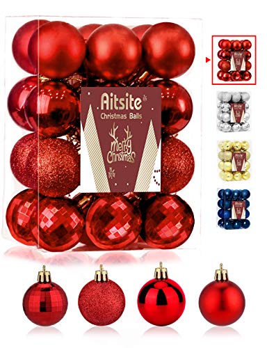 Multiple Styles: Christmas ball ornaments has three special finishes: shiny, matte and glitter,mirrored. Beautiful and colorful, perfect for xmas decorations, Universal Size: Christmas ornaments clearance is 1.57 inches in diameter. lightweight for most christmas trees. Ideal decorations for home, hotel, office, party, wedding, etc, Pre-installed Hook: The package contains 24 red balls. Each spherical ornament is equipped with a detachable hook cord for easy use, Shatterproof Christmas Ball: Mini holiday ball decorations are made of high quality plastic. Don't worry about breaking, safety for you and your children, More Benefits: We also offer Christmas ball ornaments in other sizes (0.78", 1.57", 2.36") and colors (red, gold, silver). Christmas balls in a variety of sizes and colors can make your Christmas tree more funny