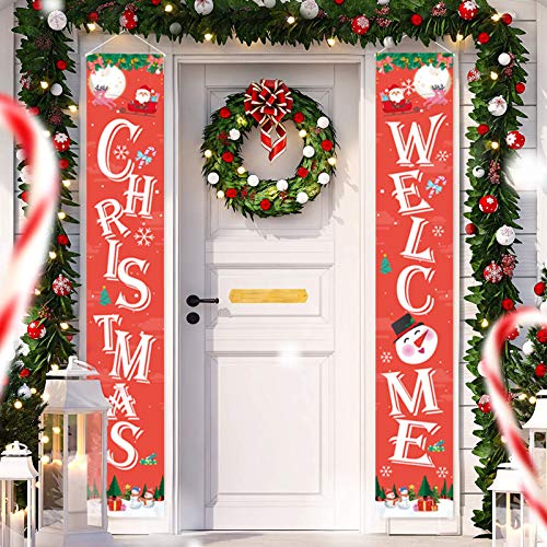 🎅【Christma Decorations】:The Christmas banner decoration is the perfect way to add some holiday cheer to your home and enhance the festival atmosphere. Banner size 71" x 12" (Length x Width) .Fits the door perfectly., 🎅【Superb Quality】: Christmas Outdoor Decoration is made of High-Quality Tear-Resistance Fabric. Durable and reusable ,Worth every pennies, this Christmas banner isn't available only for this year; But also next year, next next year, 🎅【Easy Use】:Top comes with a rod and string for hanging it up well, bottom comes with 2 holes for attaching some weights to keep the Christmas banner straight., 🎅【Widely Application】: You can hang them together or separately, fireplace, hallway, foyer, walls, window, Christmas tree, etc. Wait for the friends to come, you will receive a lot of compliments on it., 🎅【100% Satisfaction】: HAPPY CHRISTMAS! If you have any unhappiness about this purchase, please do not hesitate to contact us for a free replacement or a full refund.