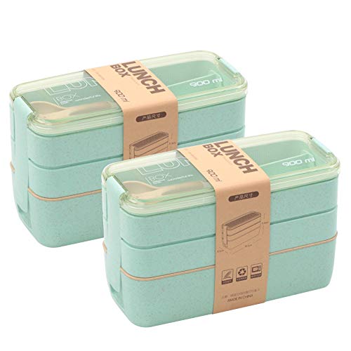 ⭐ 【REUSABLE WHEAT FIBER LUNCH BOX】 BPA-free, food-grade PP plastic and wheat fiber are super healthy and built to last. It creates a safe and healthy eating environment for you and your family. The space is large enough to accommodate the food intake of adults or children, allowing your child to have lunch with himself for a week. Plus, you can easily deep-clean the box containers in the dishwasher., ⭐ 【PORTABLE THREE STACKABLE LUNCH BOX】 Split your food between 3 divided containers. Keep your everyday meal prep under control. Removable compartment tray reheats food safely in the microwave and cleans up easily in the dishwasher. That’s why it is the best work lunch box for kids and adults., ⭐ 【SOURCE OF INSPIRATION】 Right, functional and sharp design, rooted in minimalist Japanese lunch-box traditions. All will be longing at your lunchbox from the first moment they see it., ⭐ 【KEEP FOOD FRESH】 The compartment design can effectively prevent food from mixing together, separating vegetables, fruits and snacks to maintain the original taste of the food. On busy working days, you don't have to eat cold food from plastic bags, you can make your child more appetizing at lunch., ⭐ 【WHAT YOU GET】 Two smooth and wheat fiber microwave lunch box, a fork and a spoon. Plus - fast delivery, flexible return policy.