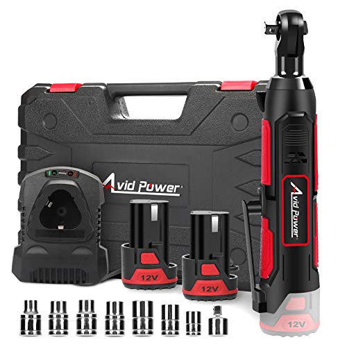 High Performance - Equipped with 12V high spec motor, Avid Power cordless ratchet wrench can deliver a max torque of 50 N.m (37 Ft-lbs) at 400 RPM, making it a perfect tool for construction, auto repair, and even home repair work., Compact & Lightweight - Weighing only 1.88lbs, the ergonomic hand grip design and 3/8'' head compact size of this cordless ratchet make it easy to reach any tight spots to lose or tight nuts and bolts effortlessly., 2 Batteries & Fast Charger - With a replacement battery which only needs 40 minutes charging time, you can complete your work more effeciently., Built-in Led & Fuel Indicator - Featuring built-in LED, this cordless ratchet wrench can illuminate the work area in dark environment. Unique on-board fuel guage will remind you remaining run time while working., What You Would Get - A cordless ratchet wrench, 2 X 2.0Ah lithium-ion batteries( one is equipped with machine), 1 X 60-minute fast charge, 1 X Avid Power BMC Case, 7 X sockets, 1 X 3/8-Inch to 1/4-Inch drive adapter, user manual.