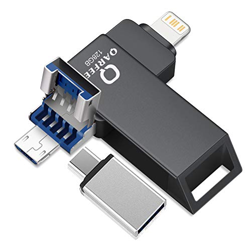 【4-in-1 PHONE SMART DRIVE for MORE DEVICES】The photo stick work with Android Phones like sumsang, LG, Huawei, Oppo which with OTG function. USB 3.0 flash drive for IOS photo stick for iPhone 11 11 Pro X, 5 5s 6 6+ 6s 6s+ se 7 7+; iPad (iOS 8.0 or higher), Computer OS Support Mac OS X v10.6+, Windows 7/8/10,iPad 2/3/4、 iPad Air 1、 iPad Air 2、 iPad Pro 9.7、 iPad Mini、 iPod、 Android、 Macbook., 【HIGH SPEED & ONE CLICK BACKUP】 IOS flash drive for iPhone photo stick driver for iPhone 128GB backup all contacts/images/audios/videos/photos/documents to your photo stick at one click. The flash drive provide fast and stable data transfers, 3x faster transfer speed makes files transmission much easier on the go. QARFEE's photo stick for iphone storage drive easily move photos, videos and other files off your iPhone or iPad and onto the flash drive., 【EASY TO USE SMART APP】①For IOS device, Automatically prompt App(LUV-Share) installation at first connect. Also can download from APP store. ②For Android phone: needs to turn on OTG function. No need to download APP. Full functions please download APP-Dual Magic Flash. Also can try other Android phone U disk management APP. ③As regular usb flash drive can work with PC & laptops. ④Can work with type-c port phones with Type-c connector., 【TRUE 128G EXTERNAL STORAGE USB Flash Drive】QARFEE iPhone photo stick backup flash drive with quality Apple license chips and iPhone interface and real 128G full capacity iphone drive Memory Stick, that ensure you can store all your files transfer to External Storage USB 3.0 Flash iPhone Drive without annoying error messages. Anywhere, anytime, to resolve storage trouble, ensure faster and stable in tranfering and watching. It's ideal for adding more storage to smart phones, laptops, game co, 【ACCESS SECURITY】 iPhone picture photo stick support file encryption. You can use the usb photo stick to encrypt selected files via fingerprints or password to secure your files . Perfect to protect individual privacy and your data safe on photo stick, no worry others steal your files, that you can share content while keeping sensitive files secure. You can also share your document/photos/songs to social media (Facebook, twitter and so on) directly from your usb stick.